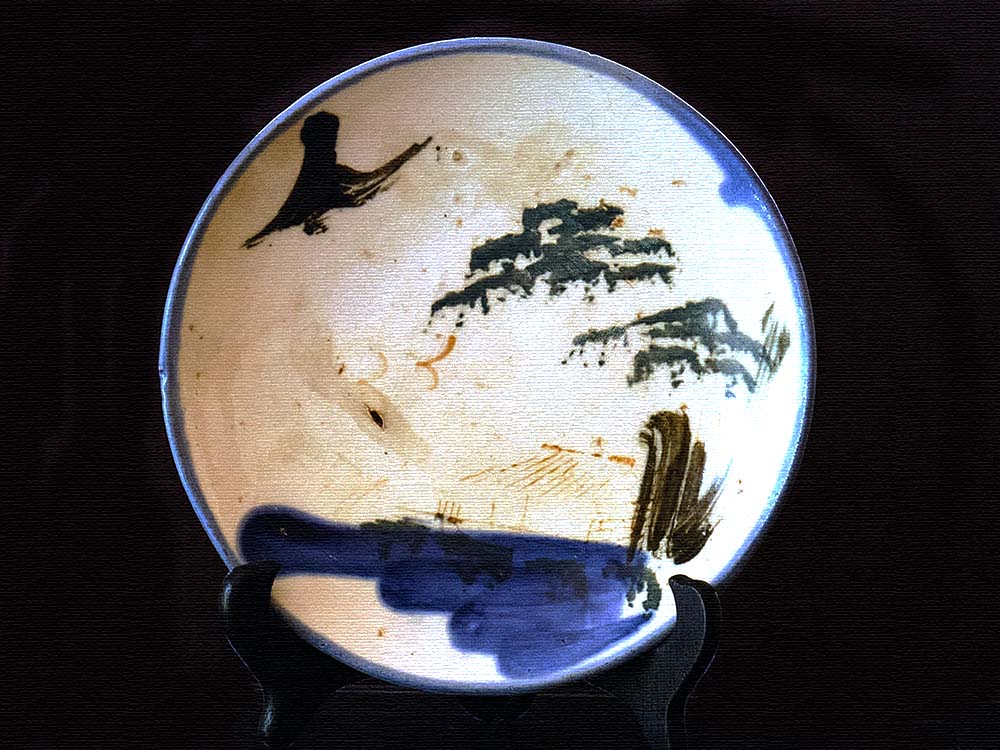 Small plate from Taiwan, made during the Japanese occupation of the island. It shows the curious melding of two very different styles.