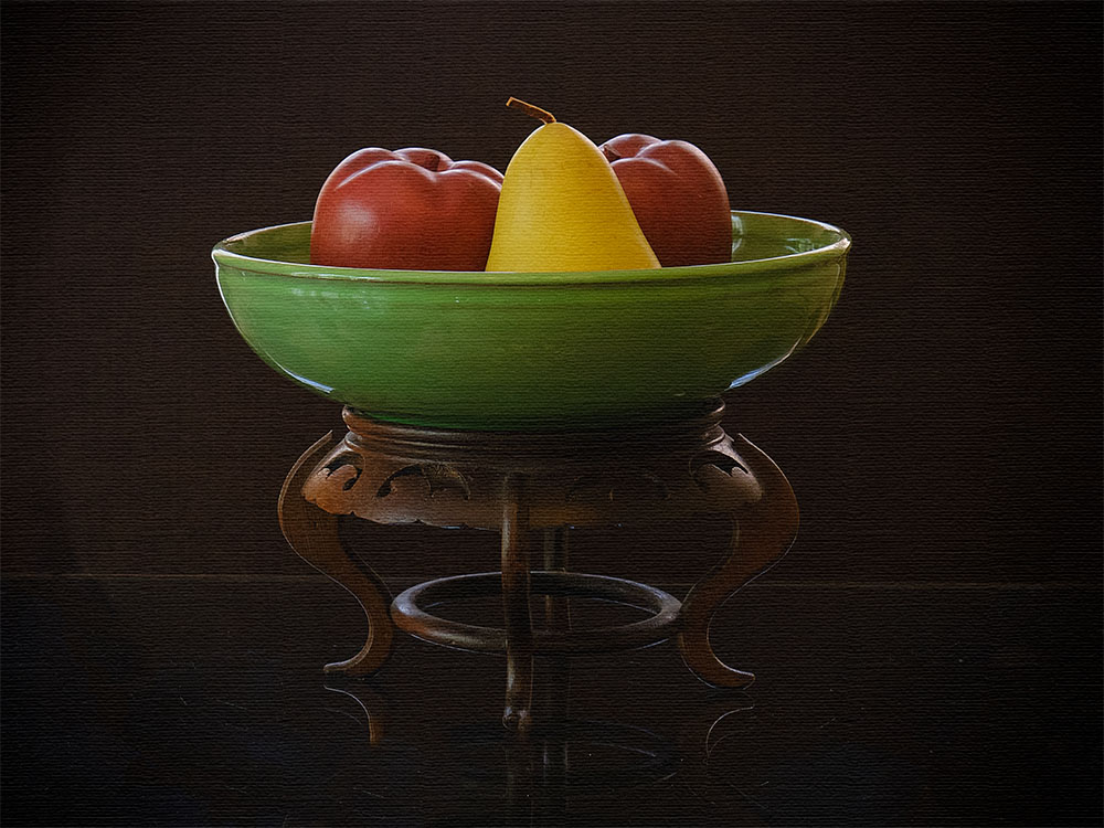 This green bowl from Japan reflects the restraint and simplicity of the Japanese esthetic. (The base appears to be Chinese and contrasts with the simplicty of the bowl, though the colors are complementary).